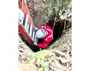 O animal foi localizado em uma roça na Estrada Geral de Morro das Pedras. A equipe dos Bombeiros Voluntários de Jaguaruna foi acionada para fazer o resgate. Ao chegar no local, a guarnição se deparou com o animal inquieto e com sinais de desidratação. Foi necessário o uso de uma escada para fazer o resgate.