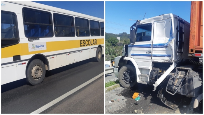 Algumas crianças foram atendidas no local. O motorista da carreta sofreu lesões leves