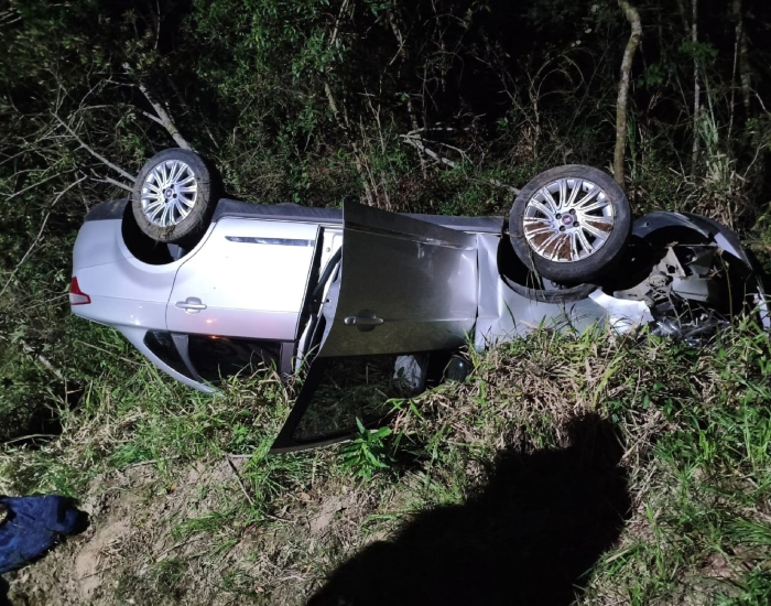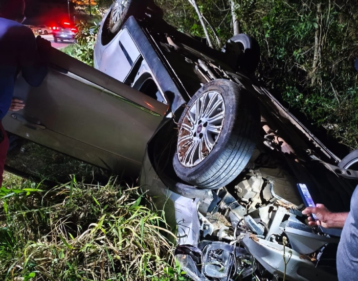 Divulgação/Folha Regional Um motorista de aplicativo perdeu o controle da direção e capotou o veículo na SC-441, próximo ao Centro de Treze de Maio. O acidente ocorreu na noite desta segunda-feira, dia 29.