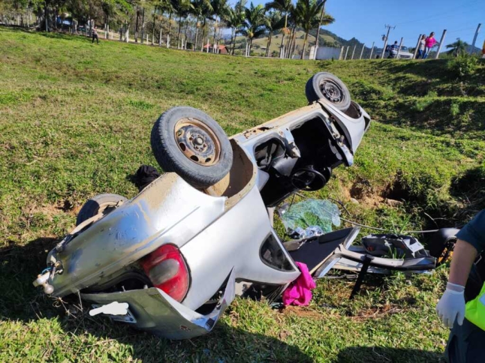 O Corpo de Bombeiros retirou a vítima do interior do veículo com fratura na perna e escoriações. O motorista também sofreu ferimentos
