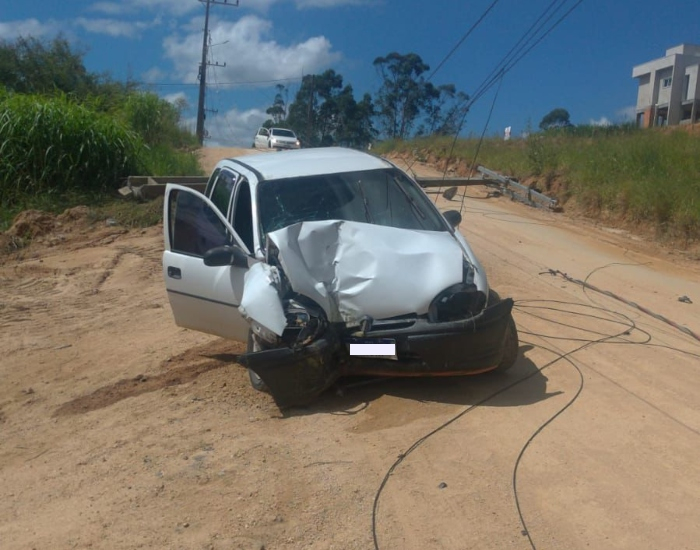 Um veículo Corsa, colidiu contra um poste na Avenida Júlio Coral, conhecida como a rua do Capim Graxa, na área Central de Morro da Fumaça, no início da tarde deste domingo, dia 24.