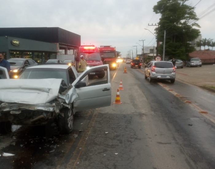 Os Bombeiros Voluntários foram acionados por volta das 17h48 para atender a ocorrência. O condutor do carro, de 49 anos, encontrava-se no interior do veículo com um corte na região da boca e escoriações pelo corpo. Durante o trajeto até o hospital, ele reclamou de dores na região do tórax.