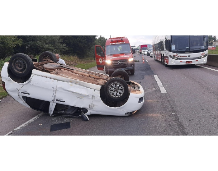 O veículo Palio com cinco ocupantes ficou capotado na rodovia. O veículo vinha da cidade de Eldorado, no Rio Grande do Sul. As vítimas conseguiram sair do veículo. A Polícia Rodoviária Federal (PRF), a equipe da CCR ViaCosteira e a guarnição dos Bombeiros Voluntários foram acionadas para atender a ocorrência.
