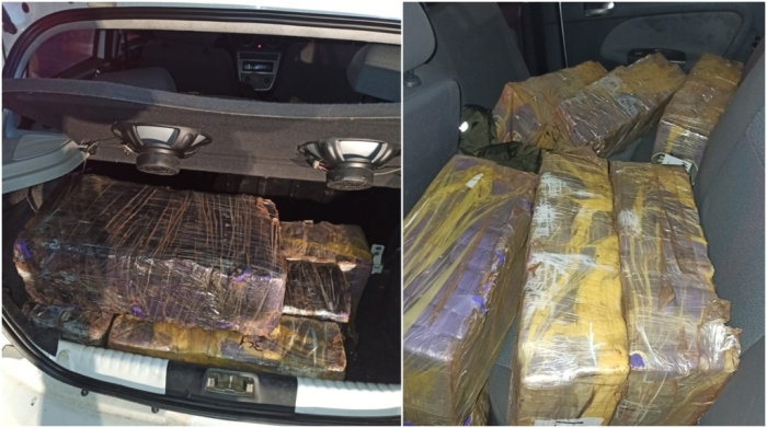 Após cerca de 12 km de perseguição, o condutor colidiu na traseira de outro automóvel e foi abordado. Dentro do veículo, foram encontrados diversos tabletes de maconha no porta-malas, banco traseiro e assoalho do banco do passageiro.