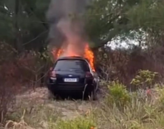 Ainda pela manhã, a Polícia Militar recebeu apoio solicitado pelo Corpo de Bombeiros após a informação de que um Ford Ka havia sido abandonado e totalmente queimado em uma área de mata nas proximidades da Avenida Sul, via que dá acesso à Barra da Ibiraquera.