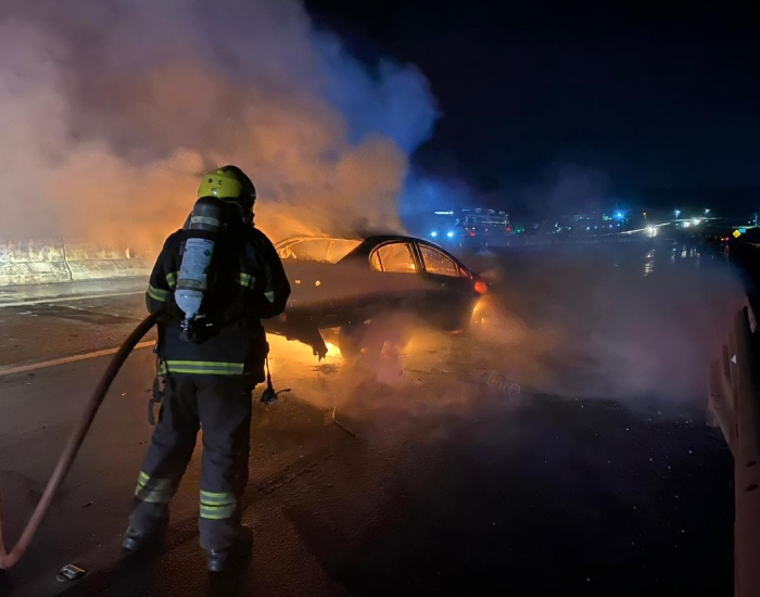 Por volta das 23h20, o Corpo de Bombeiros foi acionado e localizou o veículo Honda Civic totalmente tomado pelas chamas na pista de rolamento.