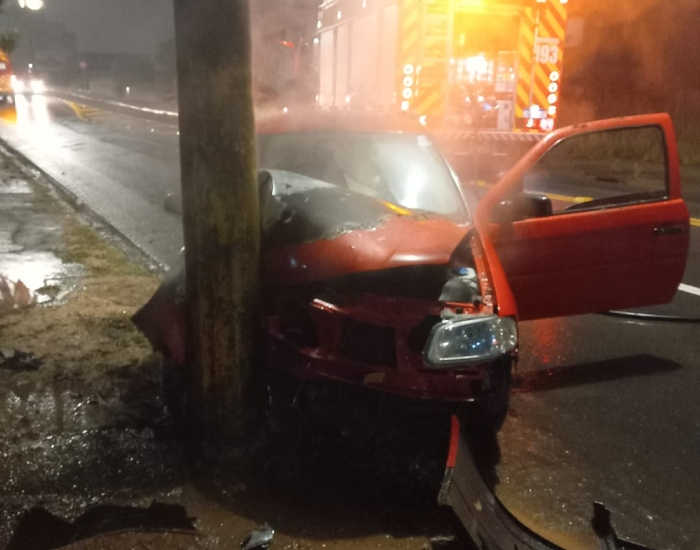 Um veículo pegou fogo após colidir contra um poste na madrugada desta quarta-feira, dia 29, por volta das 3h20, no bairro Raichaski, em Içara.