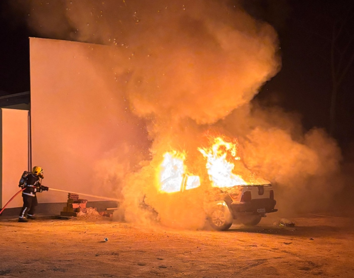 CBMSC/Divulgação/Folha Regional O Corpo de Bombeiros de Armazém foi acionado na noite desta sexta-feira, dia 25, para atender a uma ocorrência de incêndio em veículo no bairro Pouso Alto, em Gravatal, próximo ao posto da Polícia Militar Rodoviária.