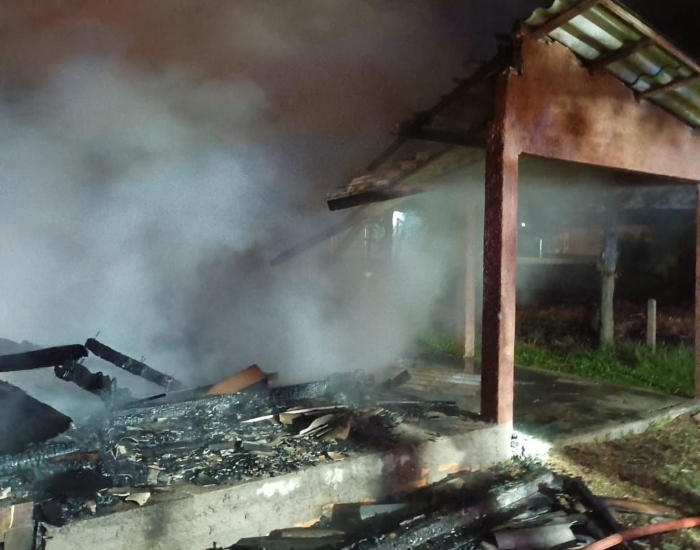 BVJ/Divulgação/Folha Regional Uma residência mista foi destruída por um incêndio na madrugada desta sexta-feira, dia 18, no Balneário Esplanada, em Jaguaruna.