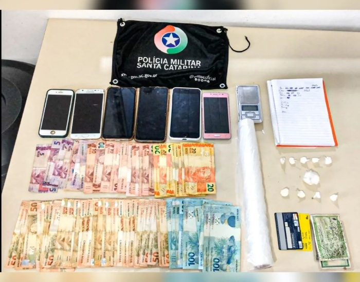 Os militares, com autorização do proprietário, entraram e realizaram uma averiguação na residência, onde foram encontradas porções de cocaína, balança de precisão, caderno de anotações referente ao tráfico e materiais utilizados para preparação de drogas, além de R$ 2.845 em dinheiro.