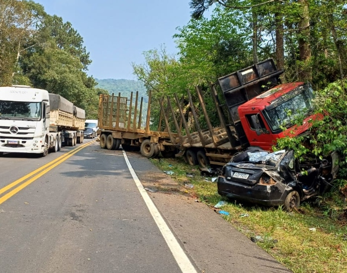 A colisão entre o carro da família de Pato Branco, no Paraná, um Ford Fiesta e uma carreta bitrem resultou na morte de Macir Mários (50), Solizete Oldoni (47), Fernanda Mários, Tais Lima e Yago (6).