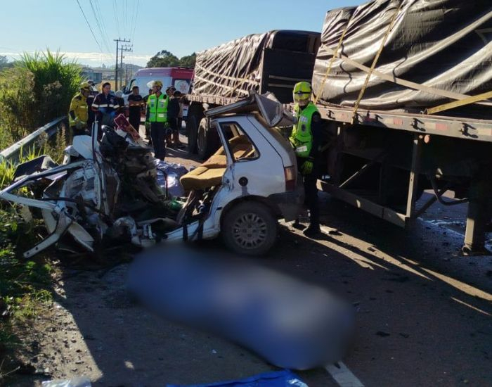 O veículo em que estavam ficou completamente destruído após o choque com o caminhão. Já o condutor do veículo de carga não sofreu ferimentos físicos e permaneceu no local para prestar esclarecimentos às autoridades. Além dos bombeiros, equipes da Polícia Militar Rodoviária (PMRv) foram acionadas para controlar o fluxo de veículos, que ficou prejudicado durante o atendimento.