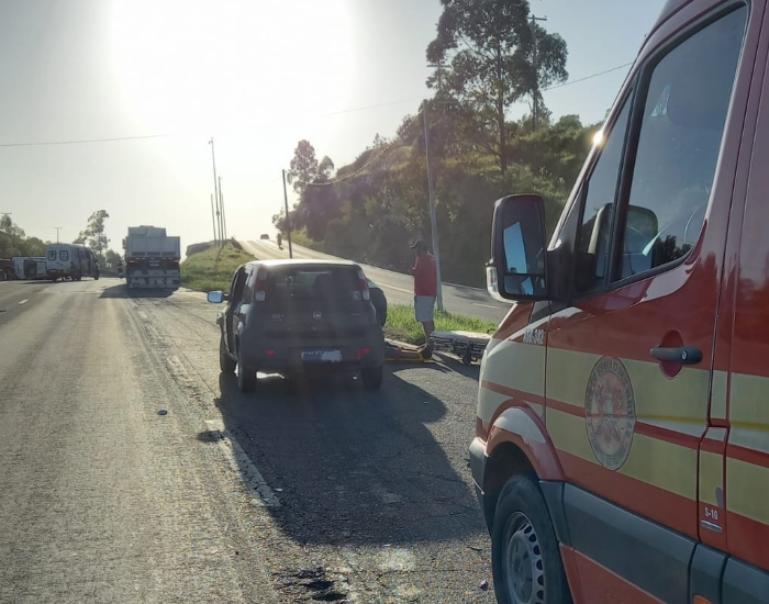 O primeiro acidente foi entre um carro, que colidiu na traseira de uma carreta. O condutor do carro, um homem de 44 anos, foi atendido pelo Corpo de Bombeiros de Morro da Fumaça. A vítima foi encontrada sentada no chão do acostamento da via, consciente e orientado, com sinais vitais alterados (hipertensão 150x100), relatando algia na região do torax e apresentando edema na face (olho direito). Após atendimento pré-hospitalar, o homem foi conduzido ao hospital São Roque. Já o condutor da carreta não sofreu ferimentos.
