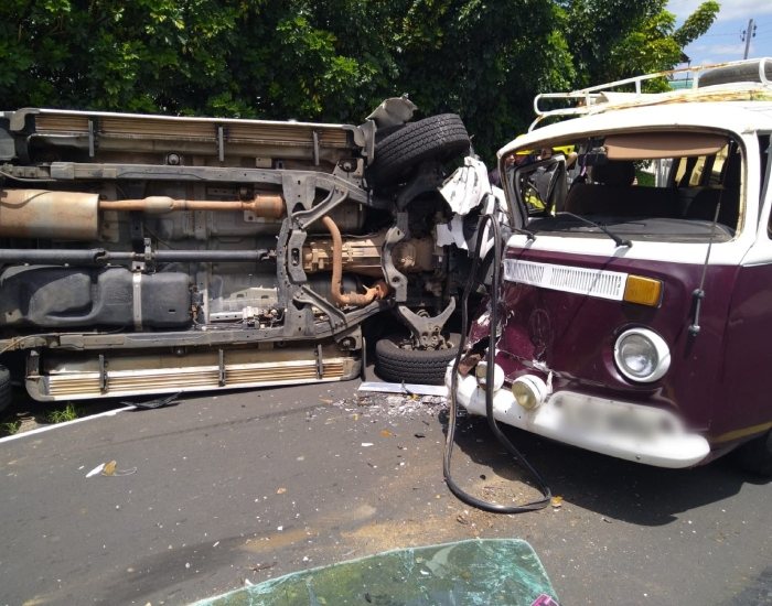 CBMSC/Divulgação/Folha Regional Uma colisão entre uma caminhonete Chevrolet S-10 e um veículo VW Kombi deixou três pessoas feridas neste sábado, dia 24. O acidente ocorreu no bairro Mineira Velha, em Criciúma.