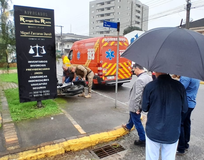 Um jovem de 21 anos foi encaminhado ao hospital com ferimentos graves na tarde desta quinta-feira, dia 8, após se envolver em um acidente de trânsito no Centro de Morro da Fumaça.