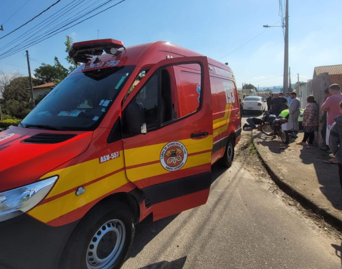 Foto: Divulgação/CBMSC O Corpo de Bombeiros foi chamado na tarde desta terça-feira, dia 8, para atender uma ocorrência de colisão entre um carro e uma motocicleta na rodovia SC-443, no bairro Santa Apolônia, em Sangão.