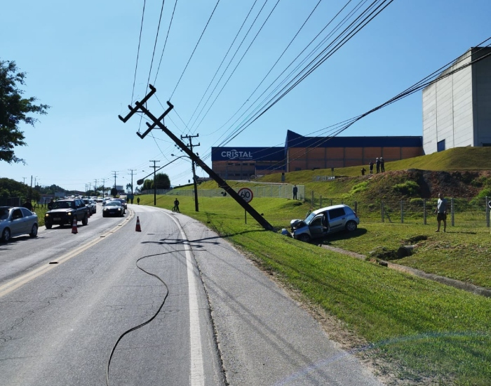 O Corpo de Bombeiros foi acionado e constatou a colisão entre um carro Renault Clio contra um poste na rodovia nas proximidades da Cristal Embalagens. Com o impacto, a rede foi afetada deixando os bairros Graziela e Barracão sem energia elétrica.