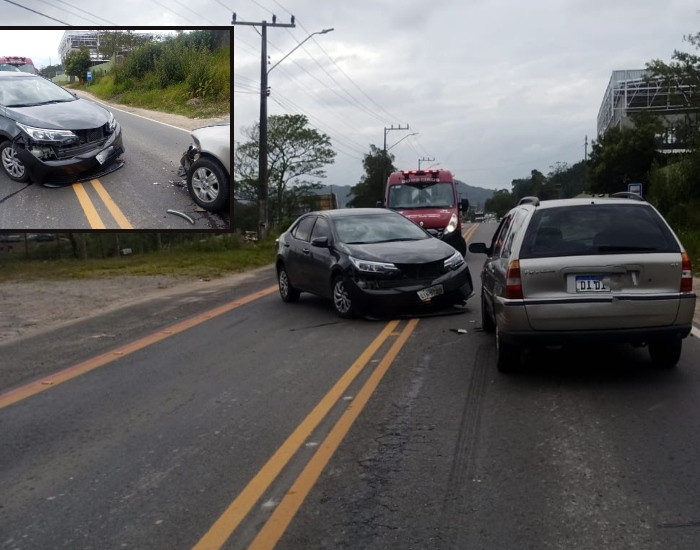 BVJ/Divulgação/Folha Regional Uma colisão entre um veículo Palio e um Corolla foi registrada nesta quinta-feira, dia 13, na Rodovia Arno Arnaldo Napoli, no bairro Encruzo, em Jaguaruna. A guarnição dos Bombeiros Voluntários foi acionada e encontrou os ocupantes dos veículos com ferimentos.