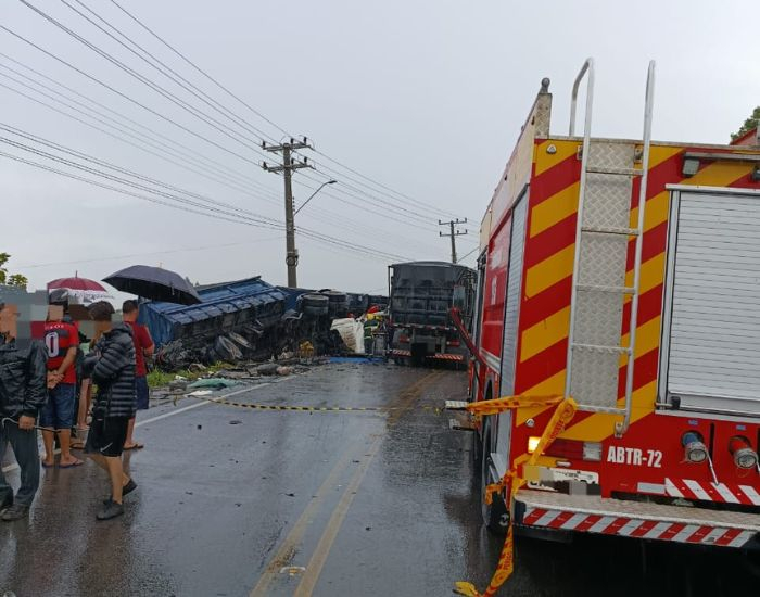 De acordo com o Corpo de Bombeiros, a guarnição do ABTR-72 foi a primeira a chegar ao local e confirmou a gravidade da ocorrência. Uma das carretas havia tombado fora da pista, com duas vítimas já fora do veículo.