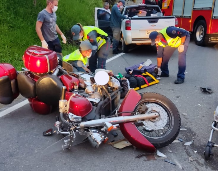 Uma colisão entre um veículo GM Montana contra uma motocicleta Shadow foi registrada na noite desta terça-feira, dia 5, na SC-437, no município de Imaruí. O Corpo de Bombeiros foi acionado e encontrou o condutor da motocicleta ainda em via pública, com suspeita de fratura nasal, fratura fechada no braço esquerdo, além de diversos ferimentos pelo corpo.