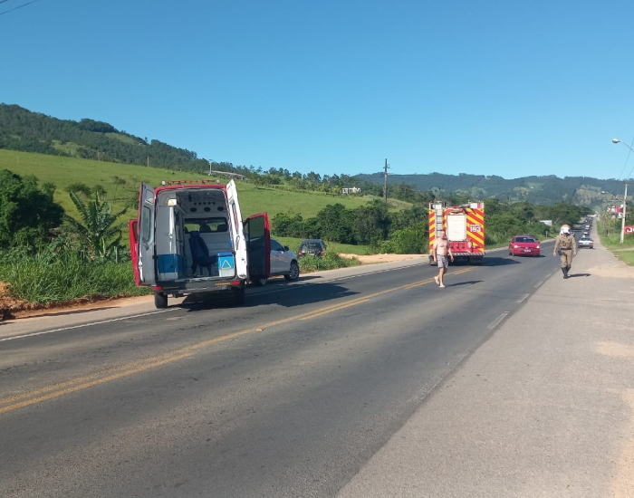Uma colisão transversal entre uma motocicleta e um veículo Honda Fit foi registrada na manhã desta terça-feira, dia 26, no Km 158, na SC-370, em Gravatal.
