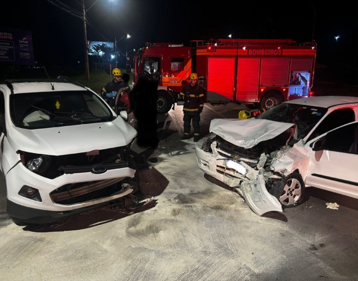 CBMSC/Divulgação/Folha Regional Uma colisão frontal entre dois carros deixou vítimas feridas na noite deste sábado, dia 30, no bairro Presidente Vargas, em Içara.