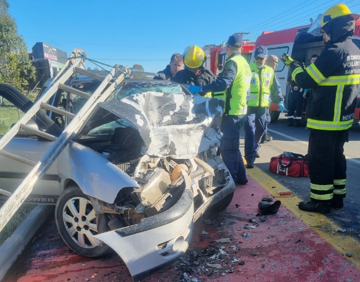 O Condutor do Gol, um homem de 40 anos, apresentava lesões graves e estava encarcerado entre as ferragens. Ele foi resgatado pelos Bombeiros Militares e Bombeiros Voluntários, sendo necessária a retirada da porta do motorista. Ele estava com suspeita de fraturas e lesões e foi conduzido ao hospital São Donato pela equipe do Samu.