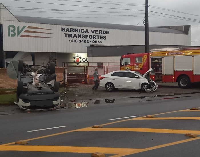 Segundo informações do Corpo de Bombeiros, uma caminhonete Fiat Toro ficou com as rodas para cima após colisão contra um veículo Chevrolet Onix. A caminhonete estava sendo conduzida por um homem de 47 anos, que foi encontrado com ferimentos e socorrido pelo Samu.
