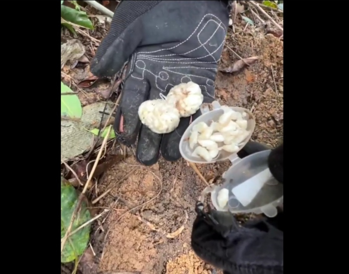Foi solicitado apoio da Guarnição do Canil para realizar as buscas no local, onde o K-9 localizou 16,9 gramas de Crack, totalizando 145 pedras embaladas e prontas para a venda no local escondidas debaixo de uma pedra em um terreno.