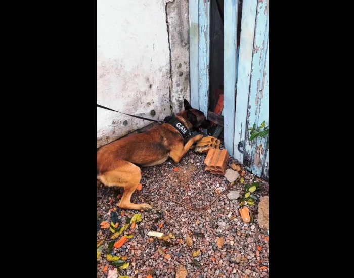 Em seguida, o Canil foi acionado para realizar uma varredura nas proximidades da abordagem e com ajuda da ferramenta canina, foram localizadas 25 porções de cocaína prontas para a venda e R$ 224 em dinheiro.