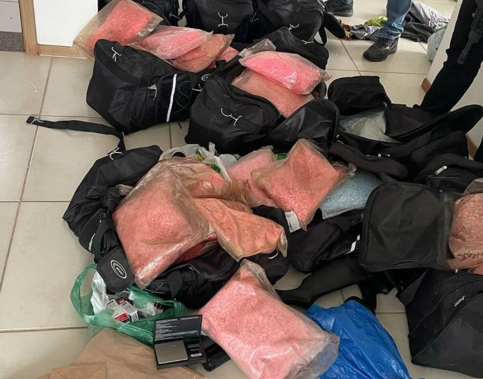 Durante as buscas, foram encontradas ainda diversas malas com milhares de comprimidos de ecstasy, além de haxixe, maconha e substância anabolizante, bem como uma pistola, balanças de precisão, embalagens para as drogas e máquina de contar dinheiro.