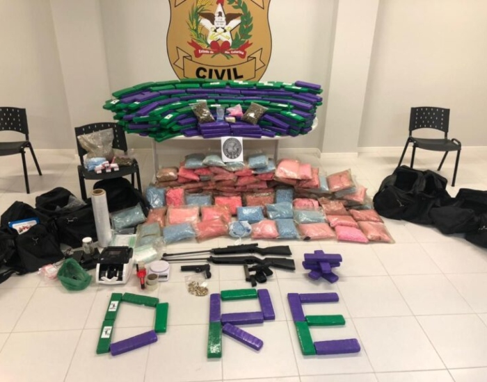A Polícia Civil de Santa Catarina, por meio da Delegacia de Repressão a Entorpecentes, com apoio da Polícia Rodoviária Federal, realizou grande apreensão de drogas e prendeu três pessoas em flagrante. No total, foram apreendidos 190 quilos de maconha e 163 quilos de ecstasy (aproximadamente 575 mil comprimidos da droga).