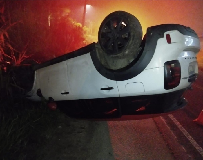 PMRv/Divulgação/Folha Regional Uma mulher sofreu ferimentos após capotar o veículo I/Mini Cyman Cooper na madrugada deste sábado, dia 3, na rodovia SC-370, no bairro Rio Bonito, em Braço do Norte.