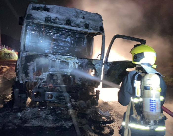 Os Bombeiros Voluntários foram acionados, pois com o impacto da colisão, o caminhão pegou fogo.