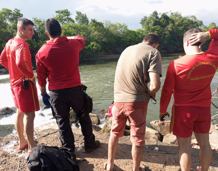 O Corpo de Bombeiros foi acionado após a vítima submergir no rio. Foi acionado apoio de outras guarnições para iniciar as buscas.