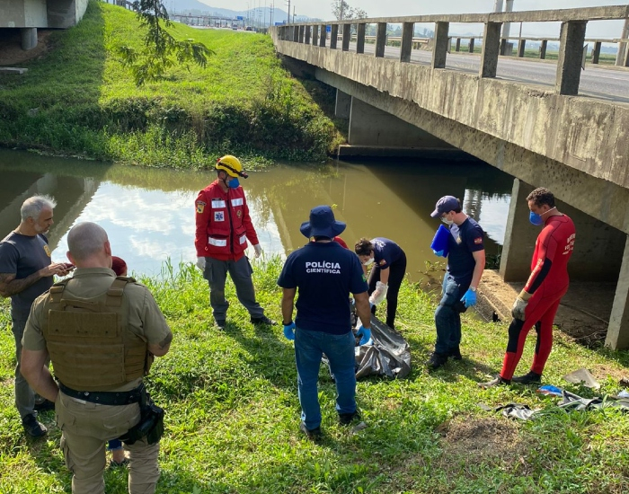 BVJ/DIvulgação/Folha Regional O corpo de um homem em avançado estado de decomposição foi encontrado boiando em rio neste sábado, dia 15, próximo ao pilar da ponte no km 345, na BR-101, em Treze de Maio.