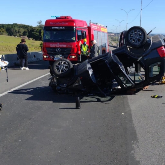 Um homem e uma mulher de 53 anos ficaram feridos após carro capotar na BR-101, no km 365, sentido norte.
