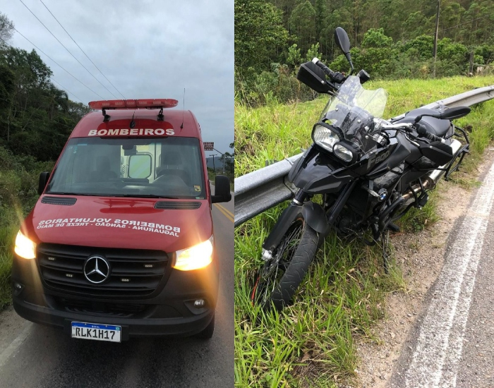 O piloto da motocicleta BMW/F 800, com placa de Turvo, um homem de 25 anos, apresentava dor no tornozelo esquerdo, e a caroneira de 19 anos estava com dor em tornozelo e cotovelo direito.