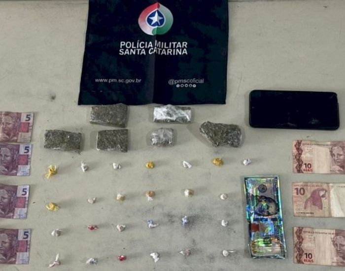 Duas pessoas são presas por tráfico de drogas e corrupção de menores em Santa Catarina - Foto: PMSC Na tarde de sábado (18), a Polícia Militar de Santa Catarina (PMSC) prendeu dois suspeitos pelos crimes de tráfico de drogas e corrupção de menores, durante a Operação Ostensividade 190.04, em Araranguá, no Sul do Estado. A ação ocorreu no bairro Jardim das Avenidas, onde os policiais também apreenderam entorpecentes e dinheiro provenientes da venda ilícita.