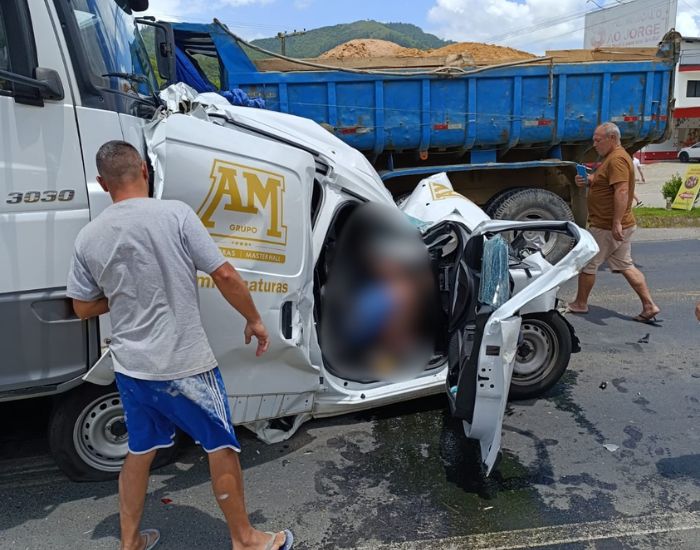 Foto: Redes sociais/Reprodução Um grave acidente de trânsito envolvendo um carro e um caminhão foi registrado por volta das 12h25 desta quinta-feira (22) na rodovia SC-370, em Gravatal.