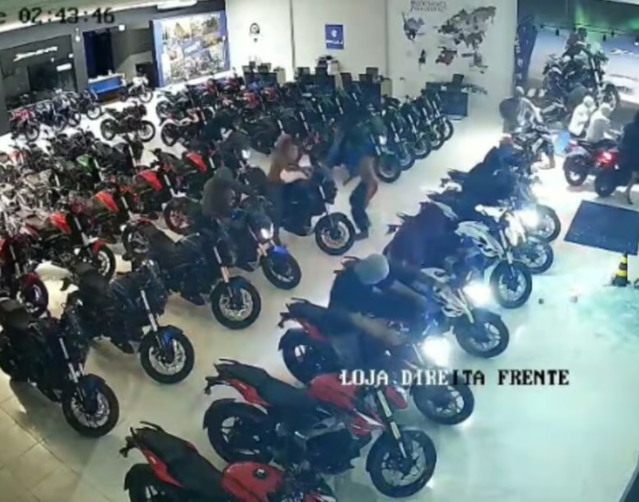 A corporação da Polícia Militar foi chamada para atender o caso por volta das 2h40. Ao chegar no local, a polícia constatou o vidro frontal da loja estava quebrado e diversas motocicletas caídas ao chão no interior do estabelecimento.