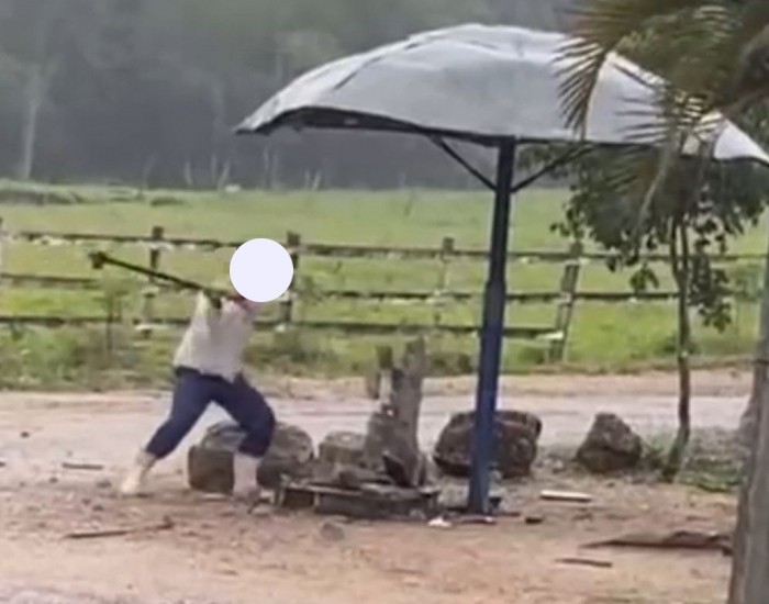 O proprietário de um terreno onde estava localizada a bica d'água do bairro Uruguaia, em Braço do Norte, foi flagrado por uma equipe de reportagem destruindo a estrutura no local.