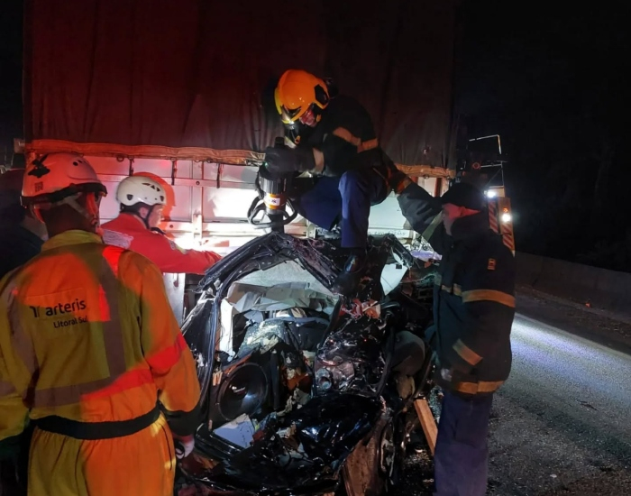 Segundo a concessionária Arteris Litoral Sul, o acidente envolveu cinco automóveis e uma carreta e gerou a interdição da pista norte para atendimento.