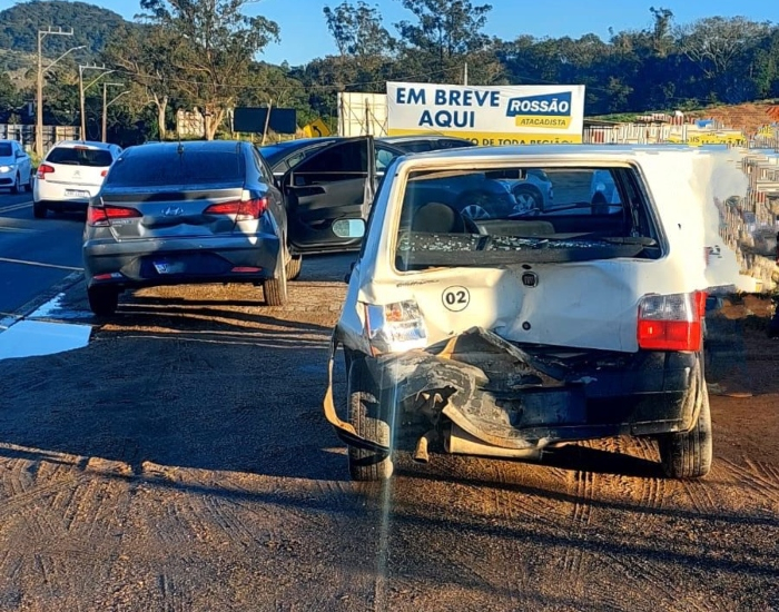 BVJ/Divulgação/Folha Regional Notícias de Jaguaruna - Um engavetamento entre três veículos surpreendeu os Bombeiros Voluntários na manhã desta terça-feira, dia 23. O acidente ocorreu em frente ao quartel da corporação, na SC-441, na Rodovia Arno Arnaldo Napoli, em Jaguaruna.