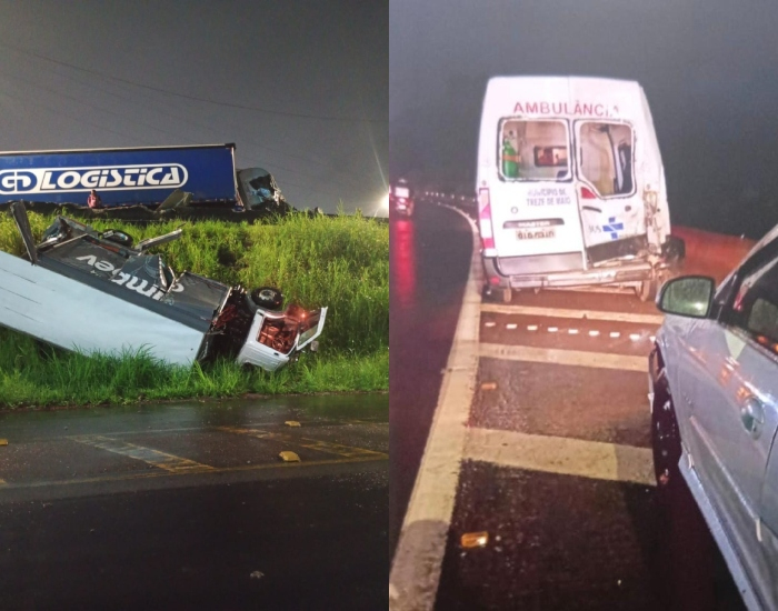 Um caminhão tombou e chegou a cair na marginal da rodovia. Um automóvel capotou na pista e uma ambulância também se envolveu no acidente. Segundo moradores, os envolvidos sofreram ferimentos e estão sendo atendidos no local pelo Corpo de Bombeiros e equipes da CCR ViaCosteira.