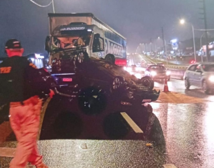Divulgação/Folha Regional Um engavetamento com diversos veículos foi registrado na noite desta terça-feira, dia 30, no Km 335 da BR-101, em Tubarão. Segundo a Polícia Rodoviária Federal (PRF), a faixa sentido sul, próximo ao Morro do Formigão, está bloqueada. O grave acidente envolveu caminhões e automóveis.