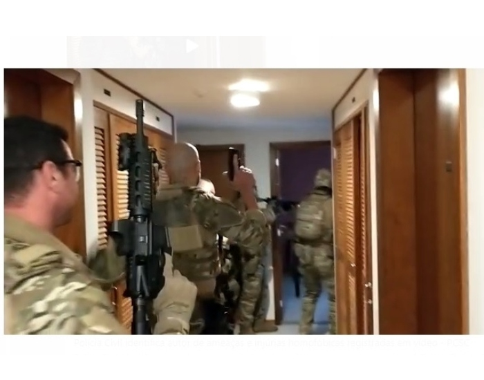 A Polícia Civil de Santa Catarina, por intermédio da Delegacia de Repressão ao Racismo e a Delitos de Intolerância da DEIC, deu cumprimento a mandado de busca e apreensão na manhã desta terça-feira, dia 14, no município de Palhoça, no apartamento do homem que é flagrado em um vídeo ameaçando duas pessoas e proferindo ofensas homofóbicas.