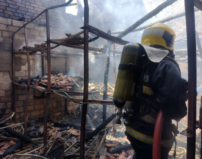 As equipes iniciaram o combate ao incêndio utilizando um total de 3.500 litros de água para extinção das chamas e realizar o rescaldo.