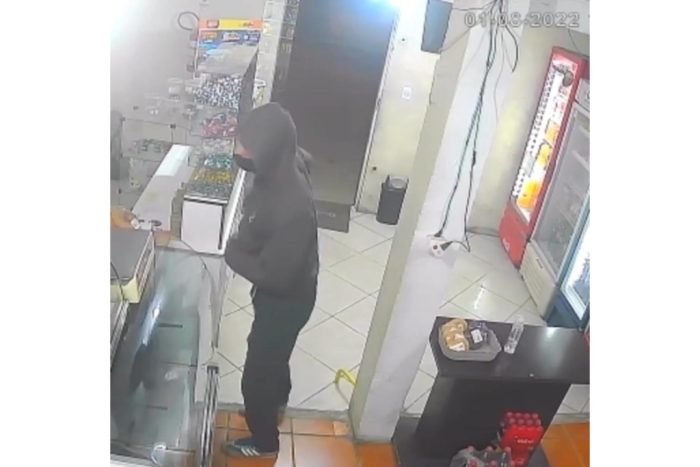 Ele usava uma máscara e moletom quando entrou no estabelecimento e anunciou o assalto
