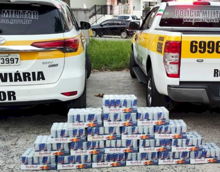 A informação foi repassada pela rede rádio policial e uma guarnição da PMRv se deparou com o veículo transitando pela SC-401, nas proximidades do cemitério Jardim da Paz, sentido Norte da Ilha. Logo em seguida, os policiais realizaram a abordagem do automóvel. Na busca pessoal foi encontrado 357 reais, um cheque e um telefone celular. Já na busca veicular, foram encontradas as 19 caixas (456 latas) de energético que haviam sido subtraídas do mercado.